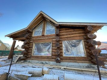 Ручная рубка срубов домов из зимнего леса Кировской области, республики Коми и Сибири